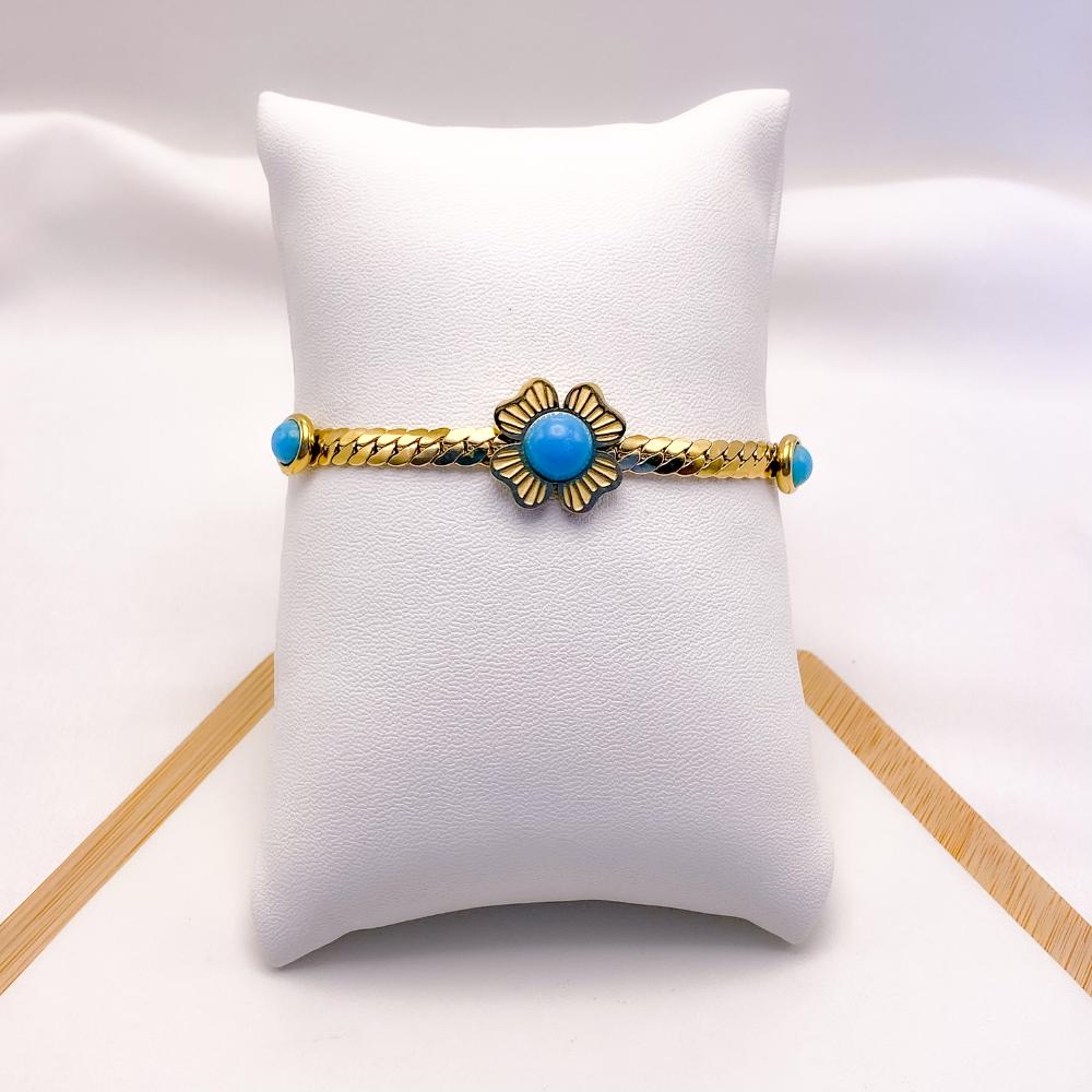 PULSEIRA AÇO INOXIDÁVEL FLOR  AZUL - DOURADA