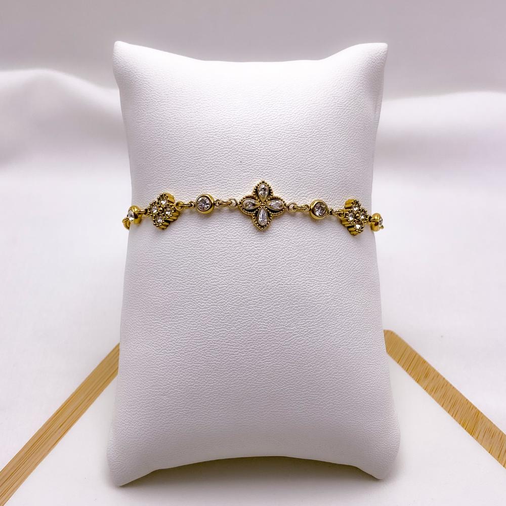 PULSEIRA AÇO INOXIDÁVEL TREVO CRISTAL - DOURADA