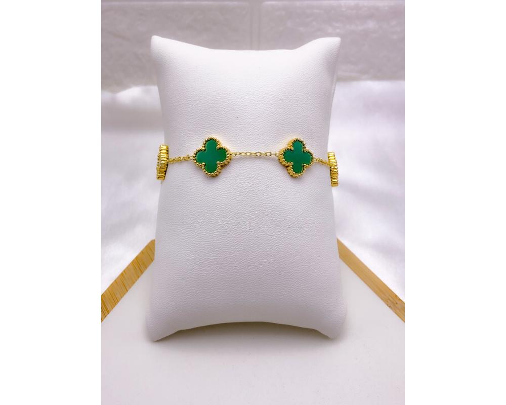 PULSEIRA AÇO INOX DOURADA - TREVO VERDE