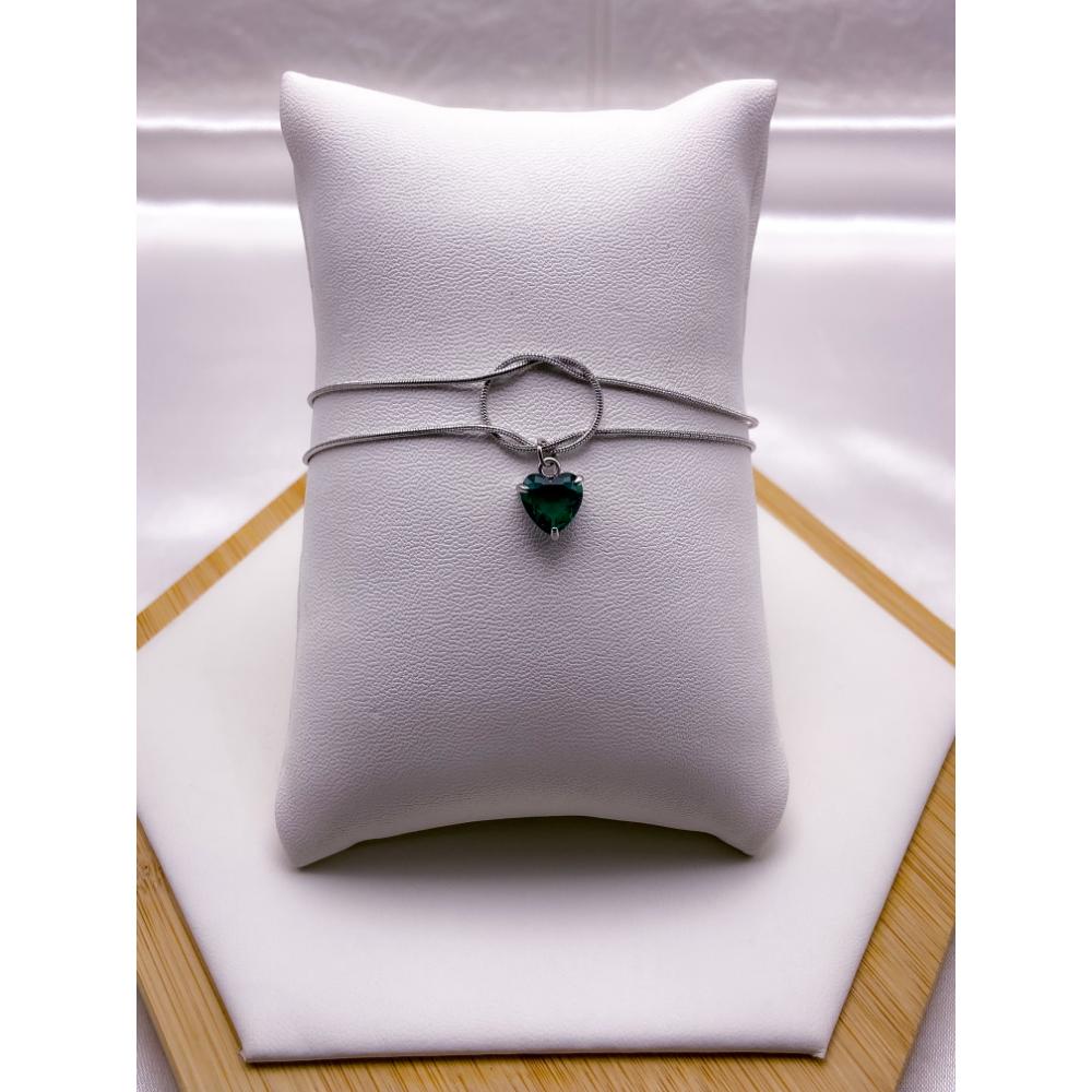 PRODUTO: PULSEIRA AÇO INOX DUPLA NÓ CORAÇÃO PEDRA VERDE - PRATEADA