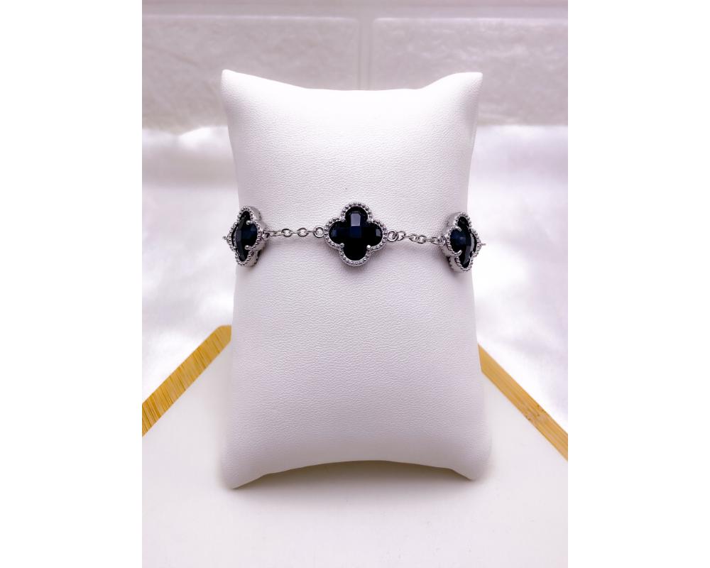 PULSEIRA AÇO INOX PRATEADA - TREVO PRETO