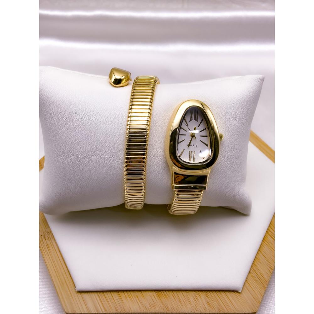 RELÓGIO SERPENTI COBRA CAIXA E PULSEIRA EM AÇO INOXIDÁVEL FUNDO BRANCO - DOURADO