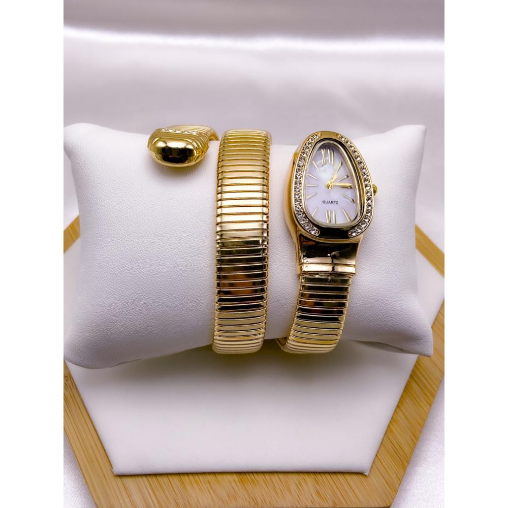 RELÓGIO SERPENTI COBRA CRAVEJADO CAIXA E PULSEIRA EM AÇO INOXIDÁVEL FUNDO PEROLADO - DOURADO