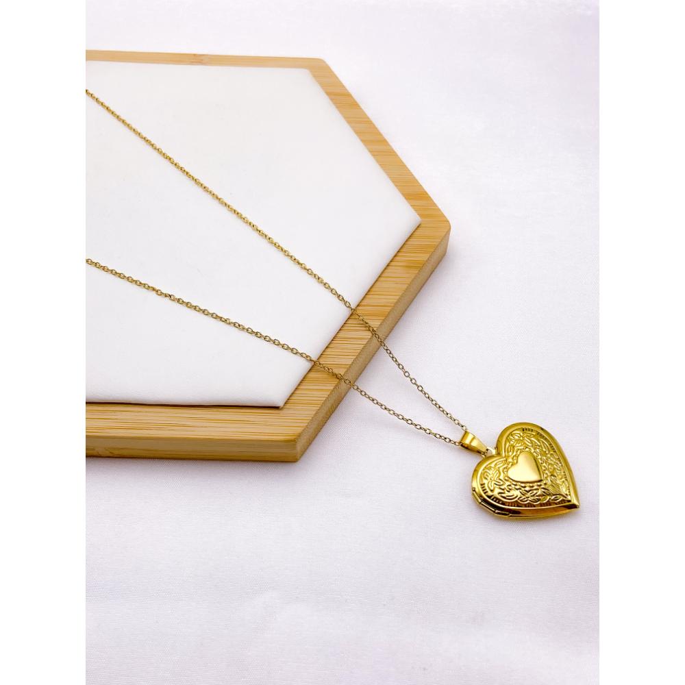 RELICÁRIO AÇO INOXIDÁVEL 55CM CORAÇÃO COM DETALHES - DOURADO