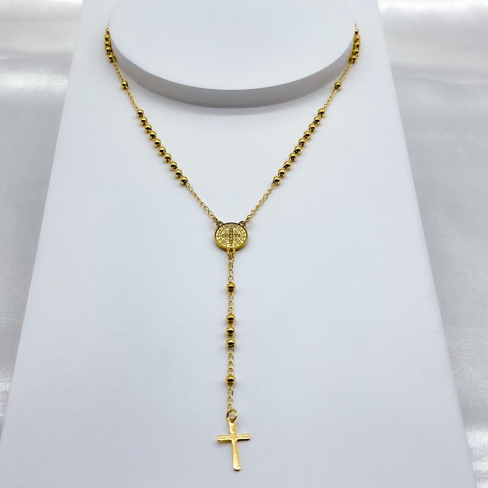 TERÇO BOLINHAS 60CM AÇO INOXIDÁVEL SÃO BENTO - DOURADO